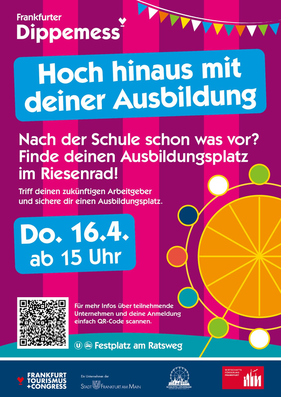 Am 16. April hebt eure Zukunft ab: Beim Job-Speed-Dating im Riesenrad lädt die Wirtschaftsförderung Frankfurt unter dem Motto „Hoch hinaus mit deiner Ausbildung“ zu einem ganz besonderen Kennenlernen ein. In luftiger Höhe haben interessierte Schülerinnen und Schüler die Chance, in nur zehn Minuten spannende Ausbildungsberufe und Unternehmen aus nächster Nähe zu entdecken – ganz entspannt in einer Gondel und mit Blick über die Stadt. Meldet euch an, packt eure Bewerbungsunterlagen ein und findet euren Ausbildungsplatz.